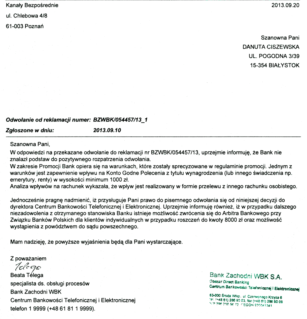 01-31 UZNANIE PROMOCJA 700 ZŁ 50,00 pln 2014-01-23 Bank dał zatem